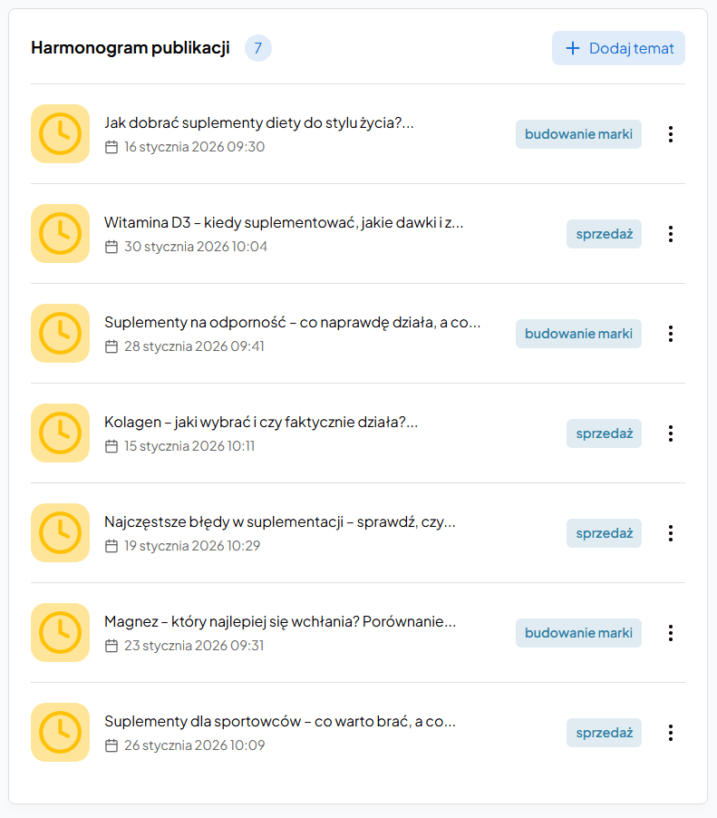 Artykuły są automatycznie publikowane na Twoim blogu według ustalonego harmonogramu.